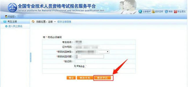 輸入驗(yàn)證碼,點(diǎn)擊“修改學(xué)歷”;