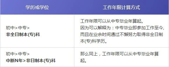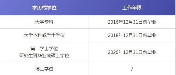 工作年限,是指報(bào)名人員取得規(guī)定學(xué)歷后工作時(shí)間的總和,其截止日期為當(dāng)年年底。