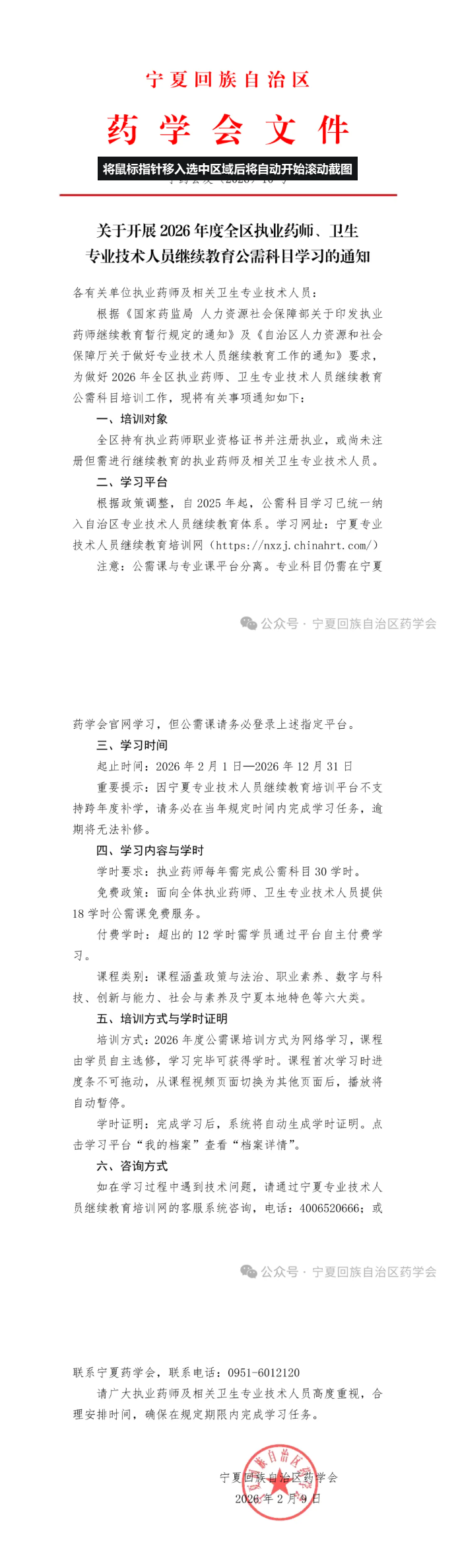 【寧夏】關(guān)于開展2026執(zhí)業(yè)藥師繼續(xù)教育公需科目學(xué)習(xí)的通知