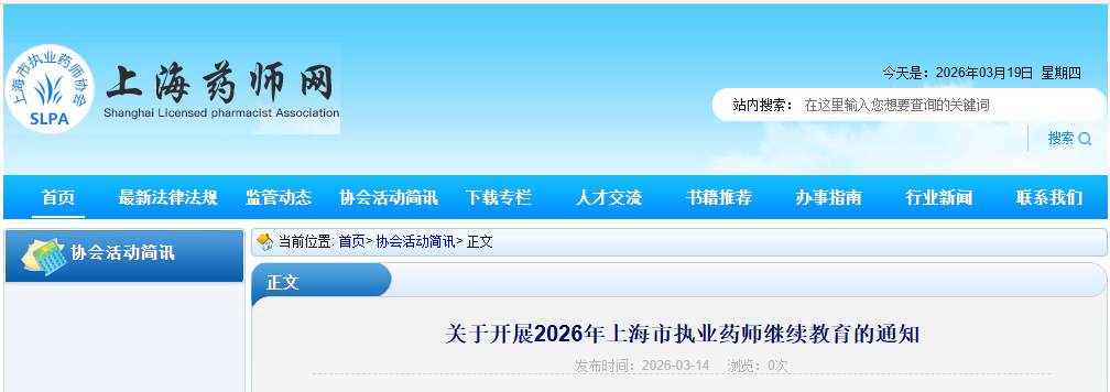 【上海】關(guān)于2026年執(zhí)業(yè)藥師繼續(xù)教育通知