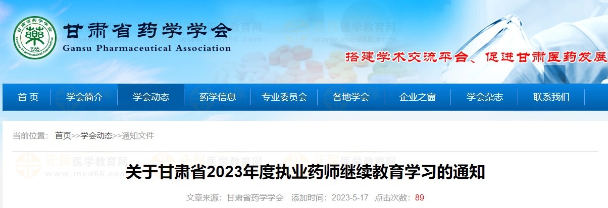 關(guān)于甘肅省2023年度執(zhí)業(yè)藥師繼續(xù)教育學(xué)習(xí)的通知