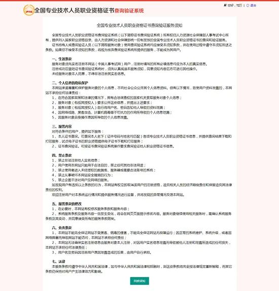 同意服務(wù)須知后,進入持證人員查詢頁面,根據(jù)注冊信息,查詢已開通證書查詢的考試中,當(dāng)前用戶所獲取的證書信息。