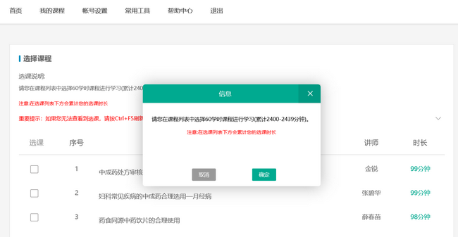 1、2020學年選課規(guī)則有變,請仔細閱讀提示信息,按照要求選課。
