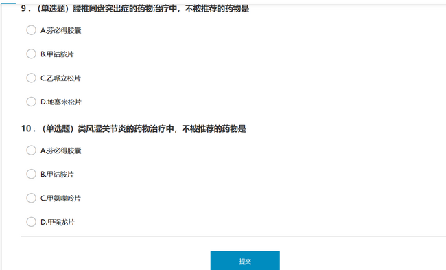 2、全部題目作答后,點擊提交??荚?0分(含)為通過。通過后可以查看答案,但不允許再次考試。