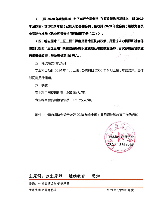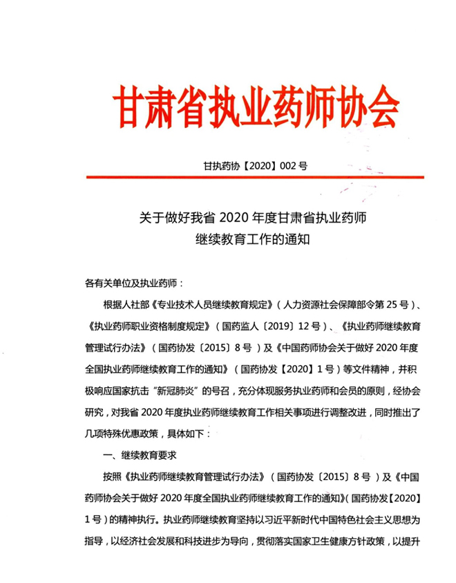 【甘肅】關(guān)于做好2020年度執(zhí)業(yè)藥師繼續(xù)教育工作的通知
