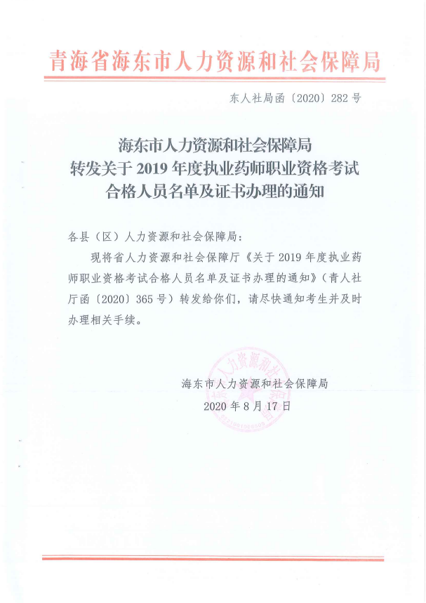 【青海海東市】2019執(zhí)業(yè)藥師考試合格人員名單及證書(shū)辦理通知