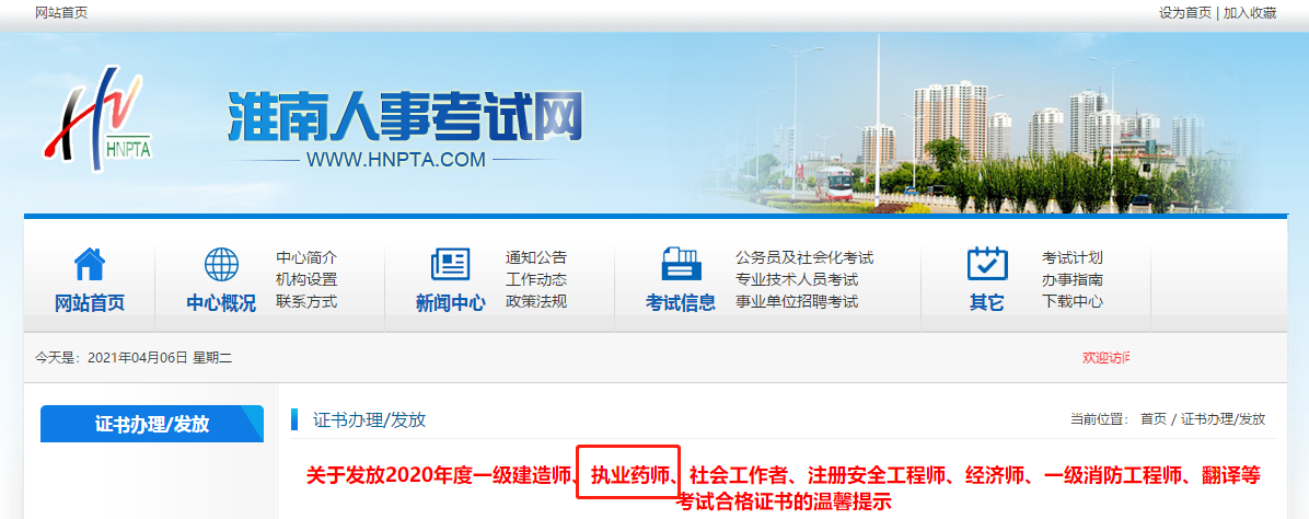 關(guān)于發(fā)放2020年度一級建造師、執(zhí)業(yè)藥師、社會工作者、注冊安全工程師、經(jīng)濟師、一級消防工程師、翻譯等考試合格證書的溫馨提示