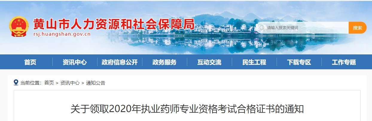 安徽黃山關(guān)于領(lǐng)取2020年執(zhí)業(yè)藥師專業(yè)資格考試合格證書的通知