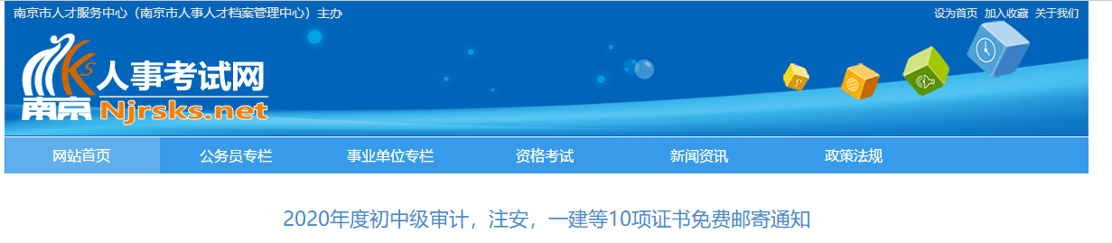 2020年度初中級審計,注安,一建,一級計量,統(tǒng)計,社工,執(zhí)業(yè)藥師,翻譯(口譯),翻譯(筆譯),二級注冊計量等10項證書于即日起免費郵寄,請在南京市市直報名點報名的考生登陸:江蘇省人事考試網上業(yè)務辦理平臺(http://jiangsu.nomax.vip/bas)填寫郵寄信息。領取快遞證書時需憑考生本人身份證簽收,考生無需支付快遞費用。