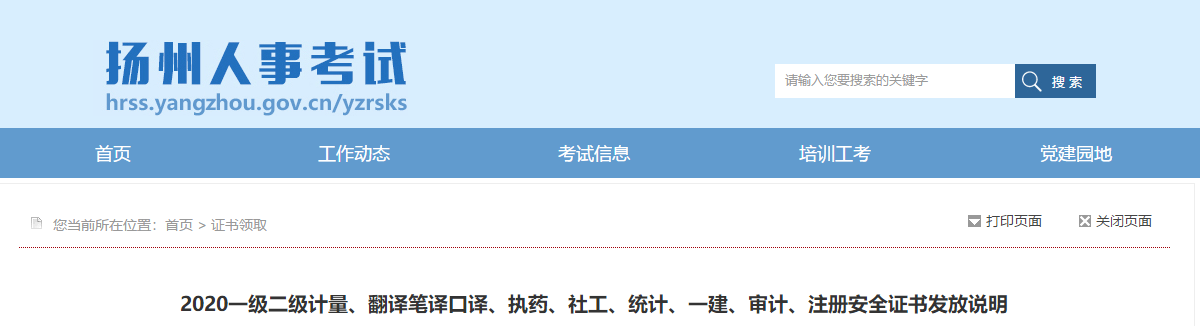 2020年一級二級注冊計量師、翻譯筆譯口譯、執(zhí)業(yè)藥師、社工、一級建造師、審計(初中級)、注冊安全工程師、統(tǒng)計(初中級)技術人員職業(yè)資格證書已到??忌傻卿浗K省人事考試網(wǎng)上業(yè)務辦理平臺(jiangsu.nomax.vip/bas)申請到付郵寄,現(xiàn)場發(fā)放時間另行通知(市人考辦位于揚州市工業(yè)職業(yè)技術學院內(nèi),根據(jù)當前疫情防控要求,暫未對社會人員開放)。