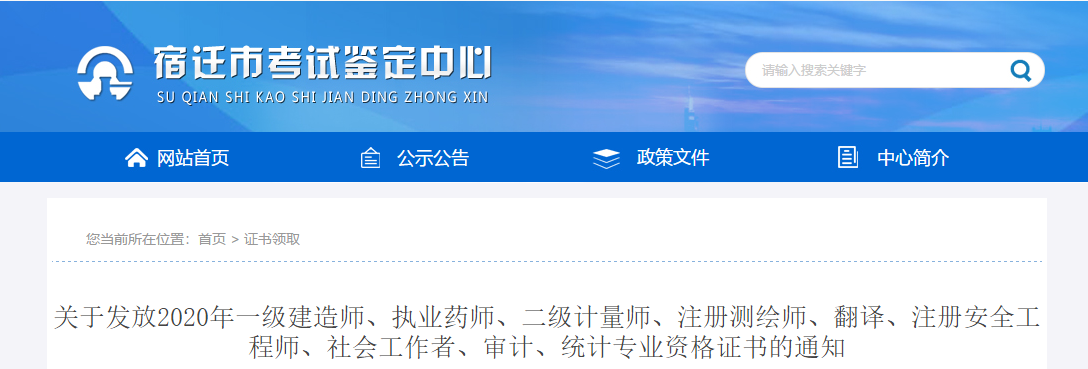 江蘇宿遷關于發(fā)放2020年執(zhí)業(yè)藥師考試資格證書的通知