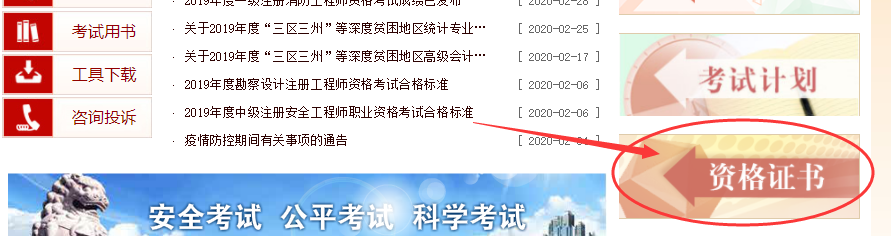 1、進入中國人事考試網(wǎng)點擊首頁的“資格證書”欄目。