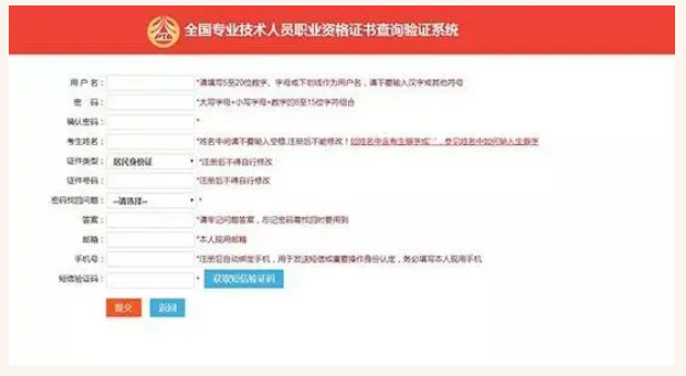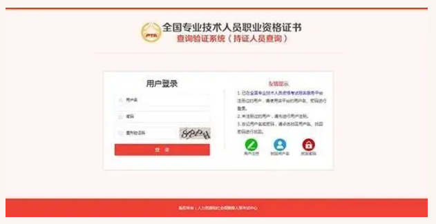 全國專業(yè)技術人員職業(yè)資格證書查詢驗證系統(tǒng)與全國專業(yè)技術人員資格考試報名服務平臺共享注冊信息,已在全國專業(yè)技術人員資格考試報名服務平臺注冊過的用戶,請使用該平臺的用戶名、密碼登錄證書查詢驗證系統(tǒng)。未注冊過的用戶,請點擊注冊按鈕進行注冊。