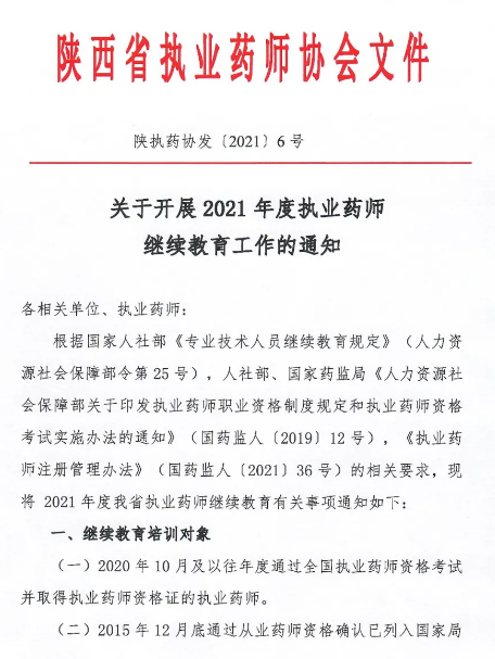 陜西省關(guān)于開展2021年度執(zhí)業(yè)藥師繼續(xù)教育工作的通知