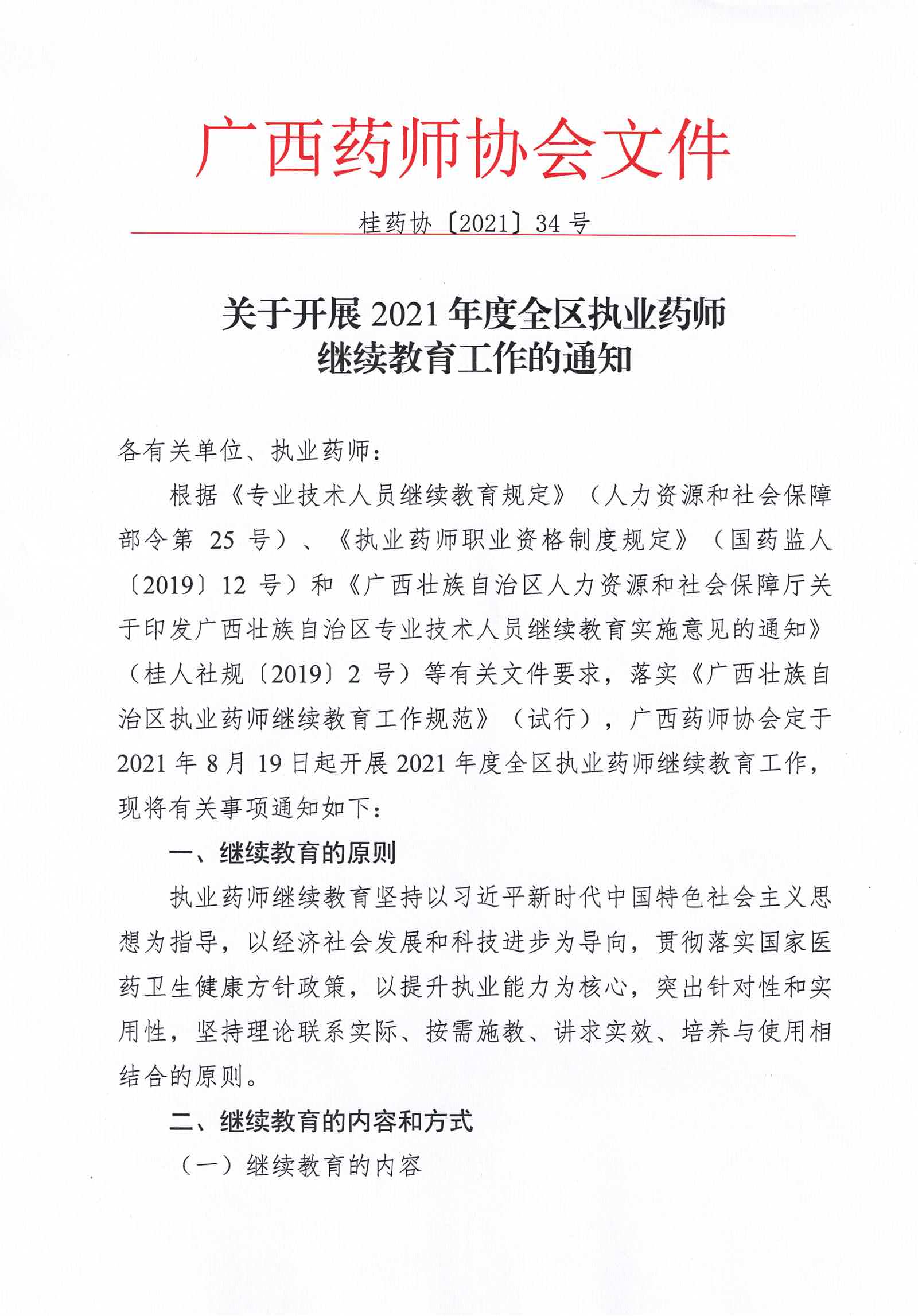 關(guān)于開展2021年度廣西全區(qū)執(zhí)業(yè)藥師繼續(xù)教育工作的通知