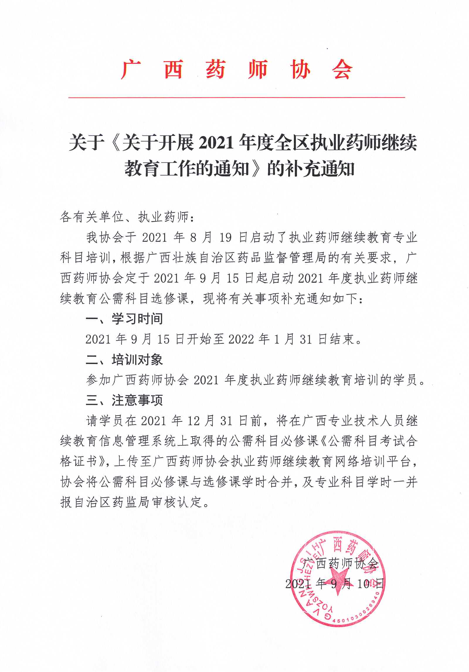 2021年廣西全區(qū)執(zhí)業(yè)藥師繼續(xù)教育工作補充通知