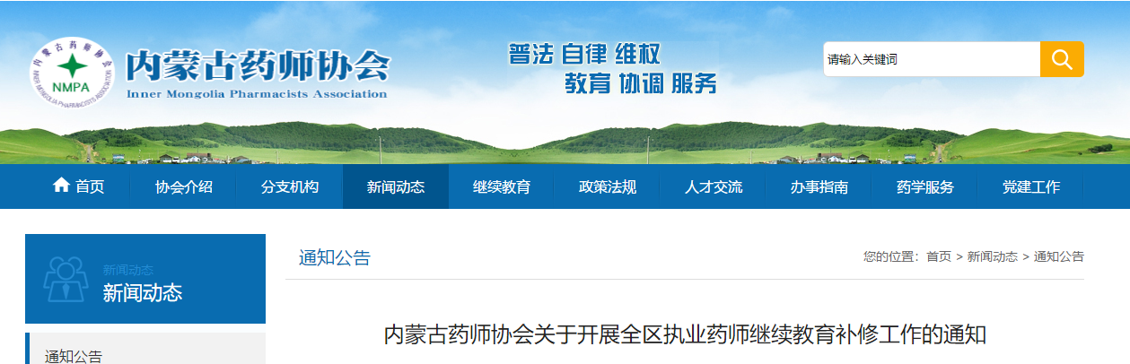 內(nèi)蒙古關(guān)于2016-2020年全區(qū)執(zhí)業(yè)藥師繼續(xù)教育補修工作的通知