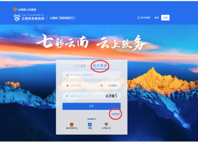2.登錄單位法人用戶賬號和密碼(注意:2019年12月1日前注冊的用戶輸入用戶名和密碼從右側(cè)窗口登錄,2019年12月1日后注冊的用戶從左側(cè)云南政務(wù)服務(wù)登錄入口進(jìn)入,在“云南省政務(wù)服務(wù)網(wǎng)”未注冊用戶請按要求進(jìn)行“法人注冊”,已注冊用戶直接登錄):