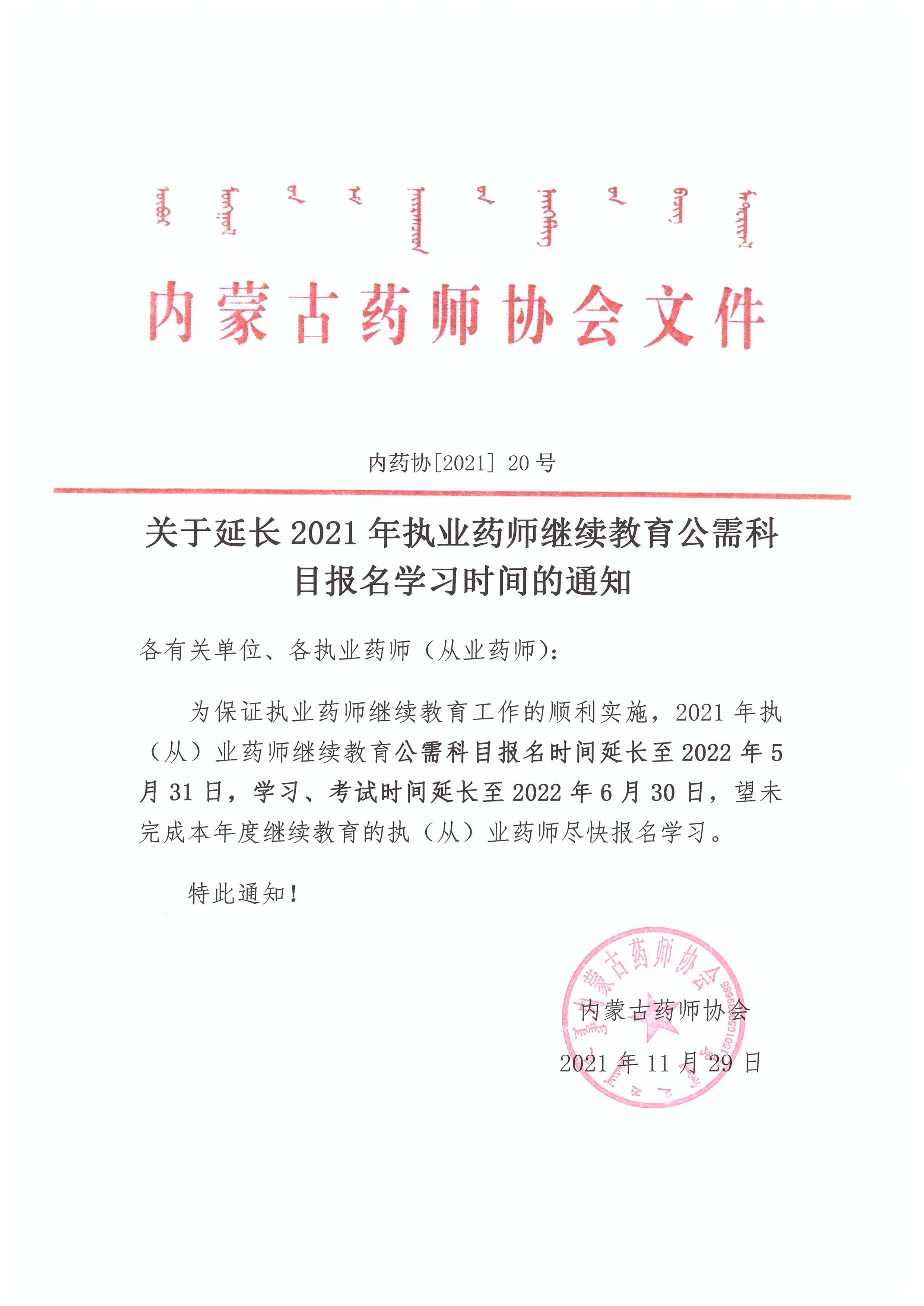 內(nèi)蒙古延長2021年執(zhí)業(yè)藥師繼續(xù)教育公需科目報(bào)名學(xué)習(xí)時(shí)間!