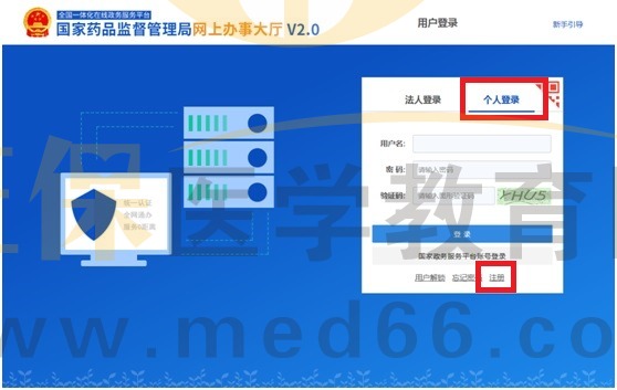 單擊“網(wǎng)上申報”,進(jìn)入“國家藥品監(jiān)督管理局網(wǎng)上辦事大廳”個人登錄頁面。