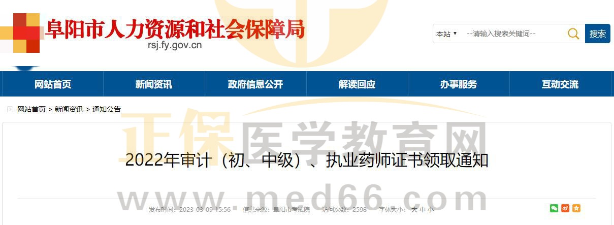 安徽阜陽2022年執(zhí)業(yè)藥師證書領取通知
