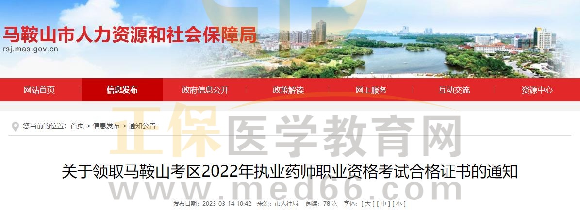 關(guān)于領(lǐng)取安徽馬鞍山考區(qū)2022年執(zhí)業(yè)藥師職業(yè)資格考試合格證書的通知