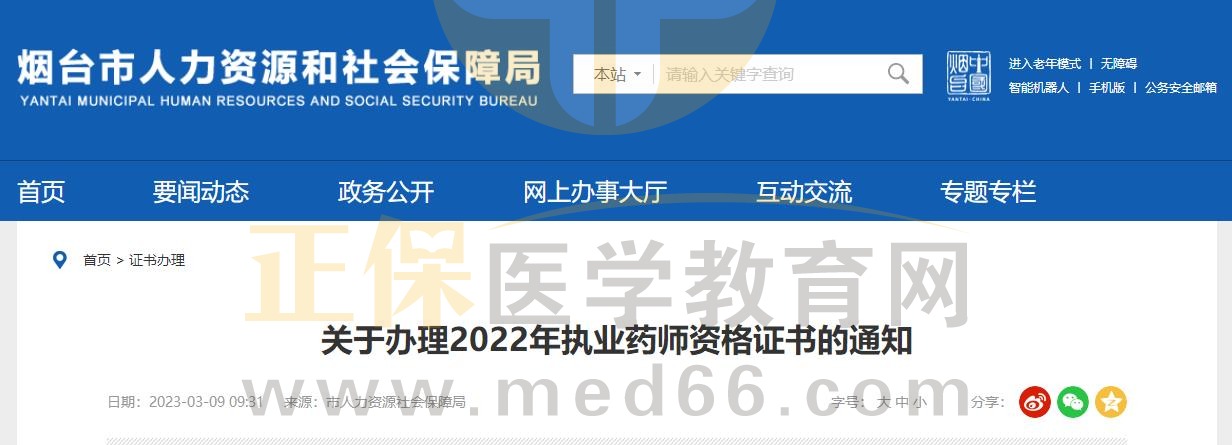 山東煙臺關(guān)于辦理2022年執(zhí)業(yè)藥師資格證書的通知