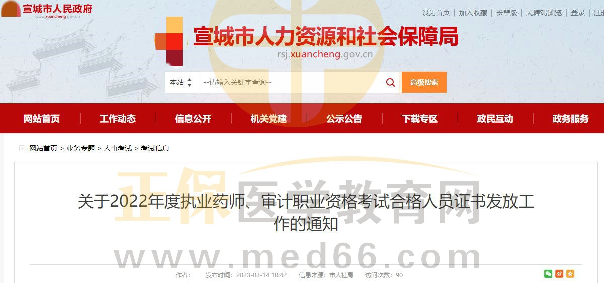 安徽宣城關(guān)于2022年度執(zhí)業(yè)藥師職業(yè)資格考試合格人員證書發(fā)放工作的通知