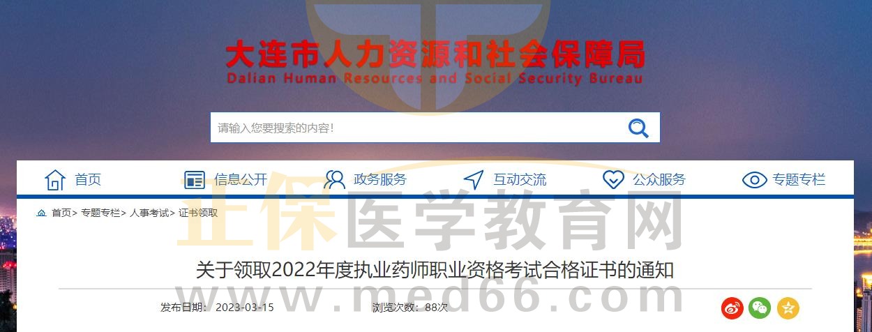 遼寧大連關(guān)于領(lǐng)取2022年度執(zhí)業(yè)藥師職業(yè)資格考試合格證書的通知