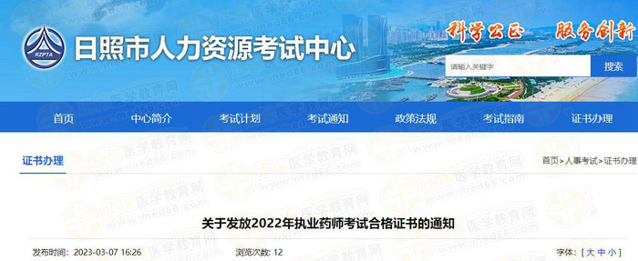 山東日照關(guān)于發(fā)放2022年執(zhí)業(yè)藥師考試合格證書的通知