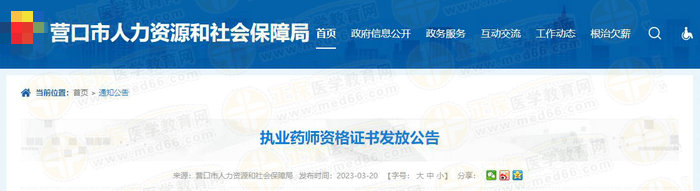 遼寧營口2022年執(zhí)業(yè)藥師資格證書發(fā)放公告