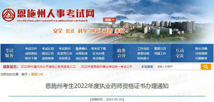 湖北恩施州考生2022年度執(zhí)業(yè)藥師資格證書辦理通知