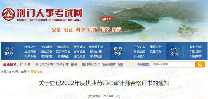 湖北荊門(mén)關(guān)于辦理2022年度執(zhí)業(yè)藥師合格證書(shū)的通知