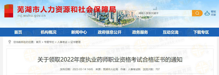 安徽蕪湖關(guān)于領(lǐng)取2022年度執(zhí)業(yè)藥師職業(yè)資格考試合格證書的通知