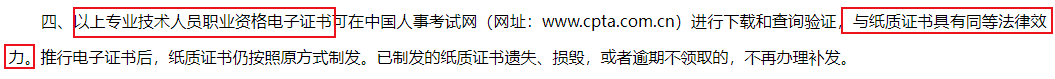 參考依據(jù):中華人民共和國自然資源部2023年5月16日發(fā)布的《人力資源社會保障部辦公廳關(guān)于推行專業(yè)技術(shù)人員職業(yè)資格電子證書的通知》,其中明確說明執(zhí)業(yè)藥師考試電子證書與紙質(zhì)證書具有同等法律效益。