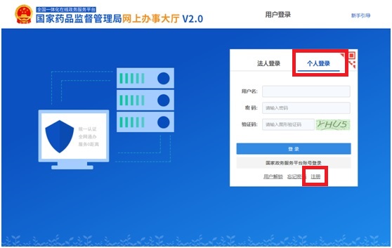 1、登錄“國家藥品監(jiān)督管理局執(zhí)業(yè)藥師注冊平臺”單擊“網(wǎng)上申報”,進(jìn)入“國家藥品監(jiān)督管理局網(wǎng)上辦事大廳”個人登錄頁面。或直接登錄”國家藥品監(jiān)督管理局網(wǎng)上辦事大廳”首頁,單擊“個人登錄”。(注意:“在國家藥品監(jiān)督管理局網(wǎng)上辦事大廳”未注冊用戶請按要求進(jìn)行“注冊”。已注冊用戶直接登錄。)