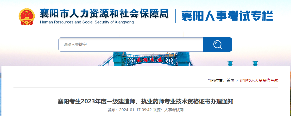 【湖北襄陽】2023年度一級(jí)建造師、執(zhí)業(yè)藥師專業(yè)技術(shù)資格證書辦理通知