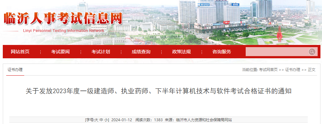 【山東臨沂】2023年度一級(jí)建造師、執(zhí)業(yè)藥師、下半年計(jì)算機(jī)技術(shù)與軟件考試合格證書發(fā)放通知