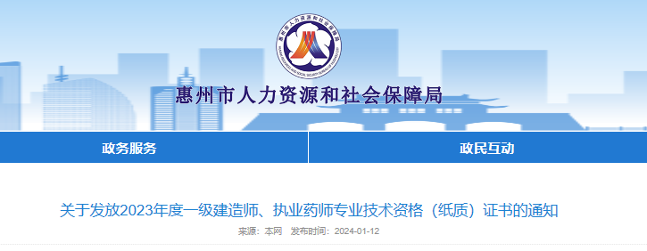 【廣東惠州】2023年度一級建造師、執(zhí)業(yè)藥師專業(yè)技術(shù)資格(紙質(zhì))證書領(lǐng)取通知