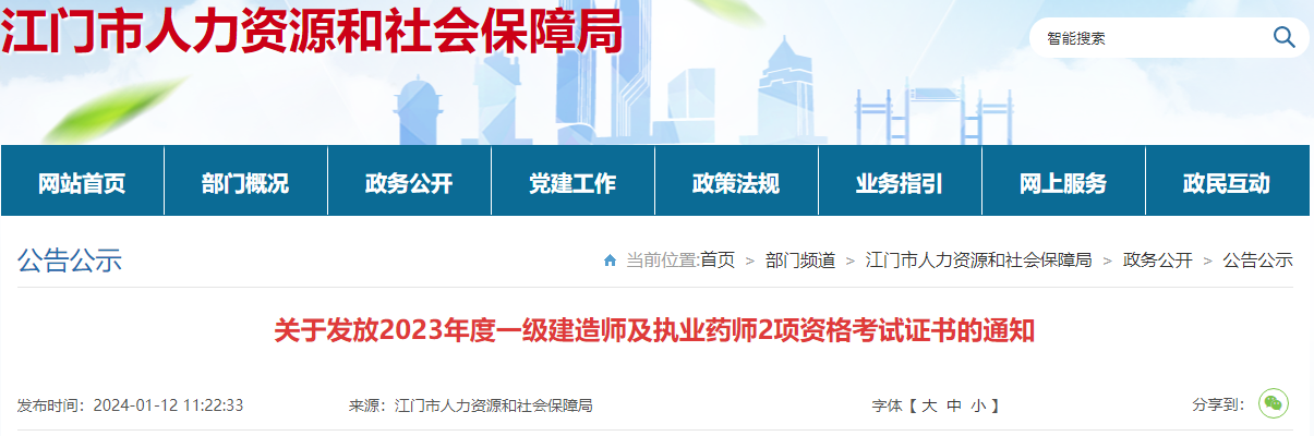【廣東江門(mén)】2023年一級(jí)建造師及執(zhí)業(yè)藥師2項(xiàng)資格考試證書(shū)領(lǐng)取通知