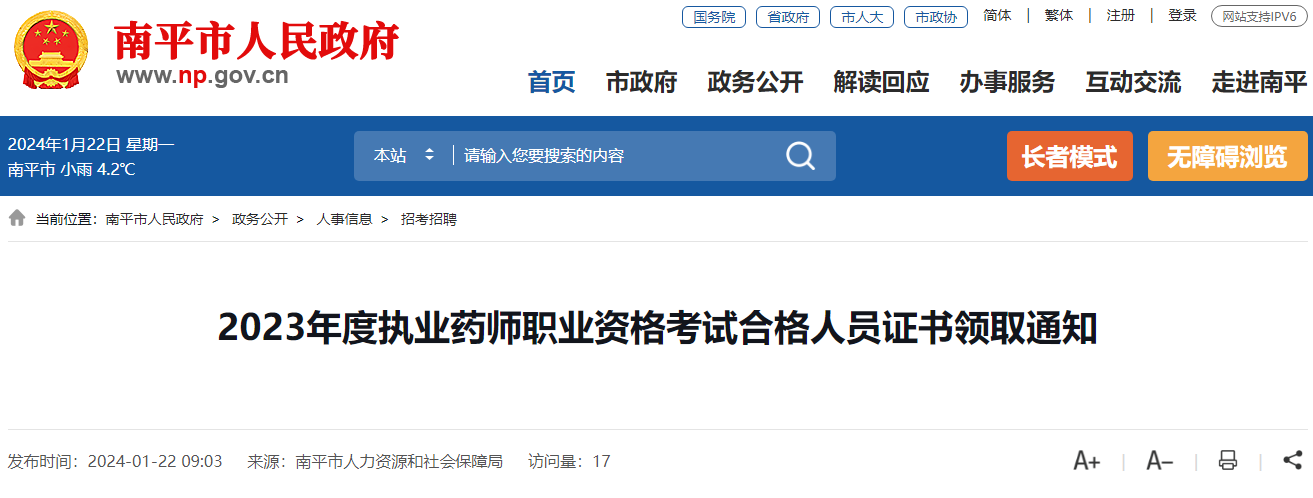 【福建南平】2023年度執(zhí)業(yè)藥師職業(yè)資格考試合格人員證書領(lǐng)取通知