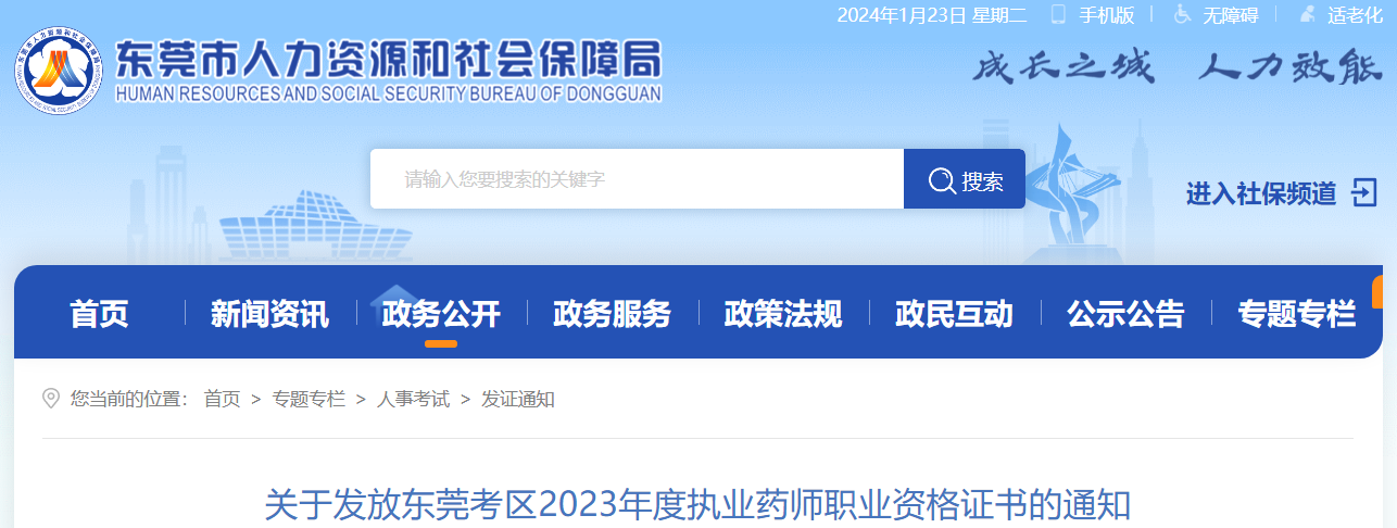 【廣東東莞】關(guān)于發(fā)放2023年度執(zhí)業(yè)藥師職業(yè)資格證書的通知