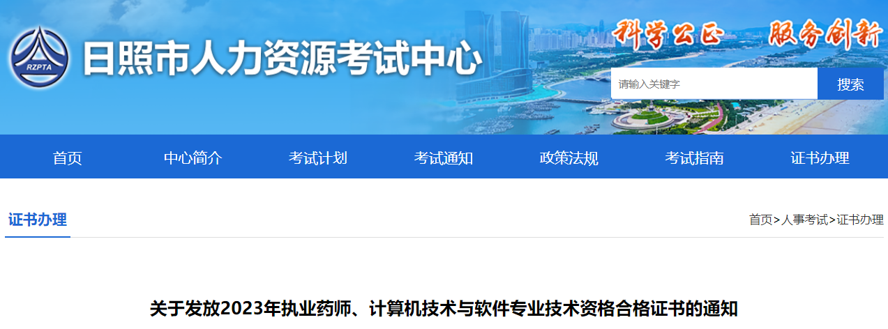 【山東日照】關(guān)于發(fā)放2023年執(zhí)業(yè)藥師、計算機(jī)技術(shù)與軟件專業(yè)技術(shù)資格合格證書的通知
