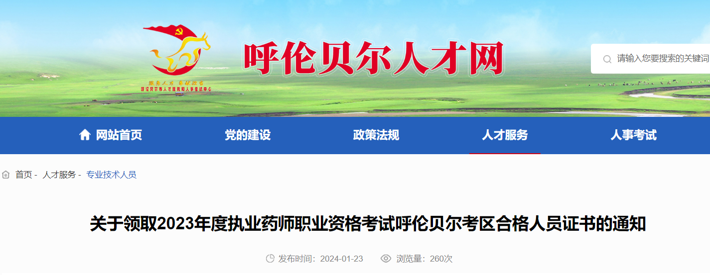 【內(nèi)蒙古呼倫貝爾】2023年執(zhí)業(yè)藥師職業(yè)資格考試合格人員證書(shū)領(lǐng)取通知