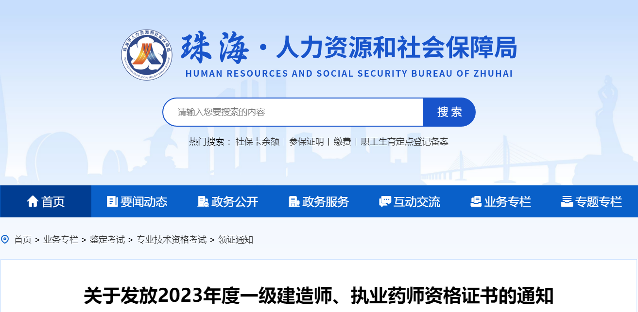 【廣東珠?!筷P(guān)于發(fā)放2023年度執(zhí)業(yè)藥師、一級(jí)建造師資格證書(shū)的通知