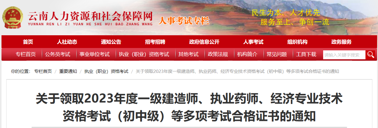 【云南】關(guān)于領(lǐng)取2023年執(zhí)業(yè)藥師等多項(xiàng)考試合格證書的通知
