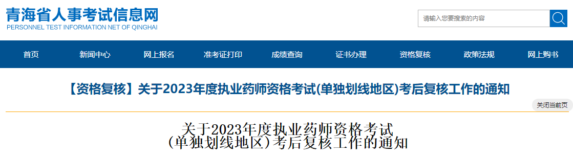 【青海資格復(fù)核】關(guān)于2023年度執(zhí)業(yè)藥師資格考試(單獨(dú)劃線地區(qū))考后復(fù)核工作的通知