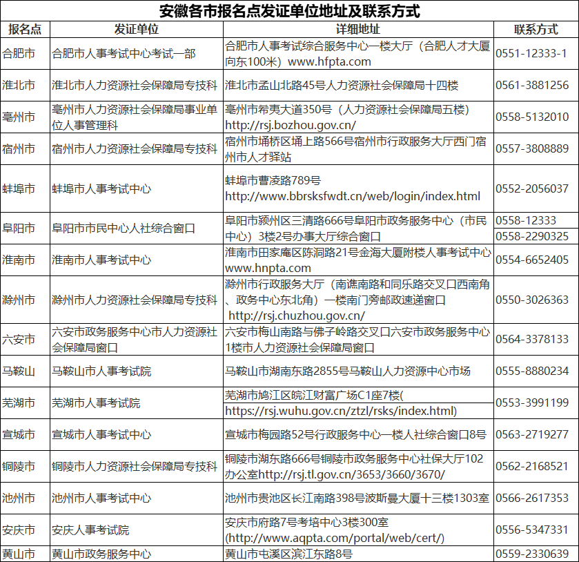 附:各市報名點發(fā)證單位地址及聯(lián)系方式