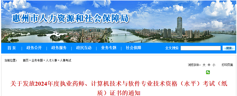 【廣東惠州】2024年執(zhí)業(yè)藥師考試(紙質(zhì))證書發(fā)放通知