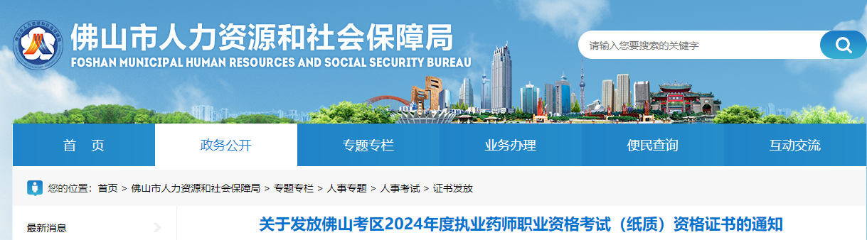 【廣東佛山】2024年度執(zhí)業(yè)藥師職業(yè)資格考試(紙質(zhì))資格證書發(fā)放通知